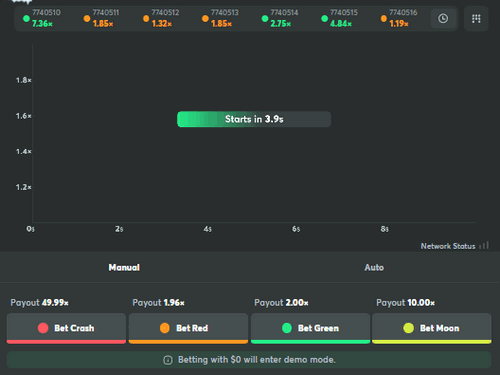 | Special Features | Trenball mode allows betting on predicted multiplier ranges (Red, Green, Moon) |
