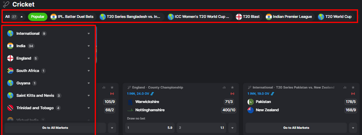 - Localized offers. Events revolve around major cricket happenings like the IPL or the World Cup, appealing more to event-focused bettors.