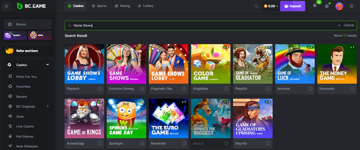 - Game time. Welcome to the club; you have made a deposit. You have found a deposit for your cryptocurrency, and now let the games begin. Automatically, after making a deposit, head straight to the BC.Game live casino sections and check the categories in there.
