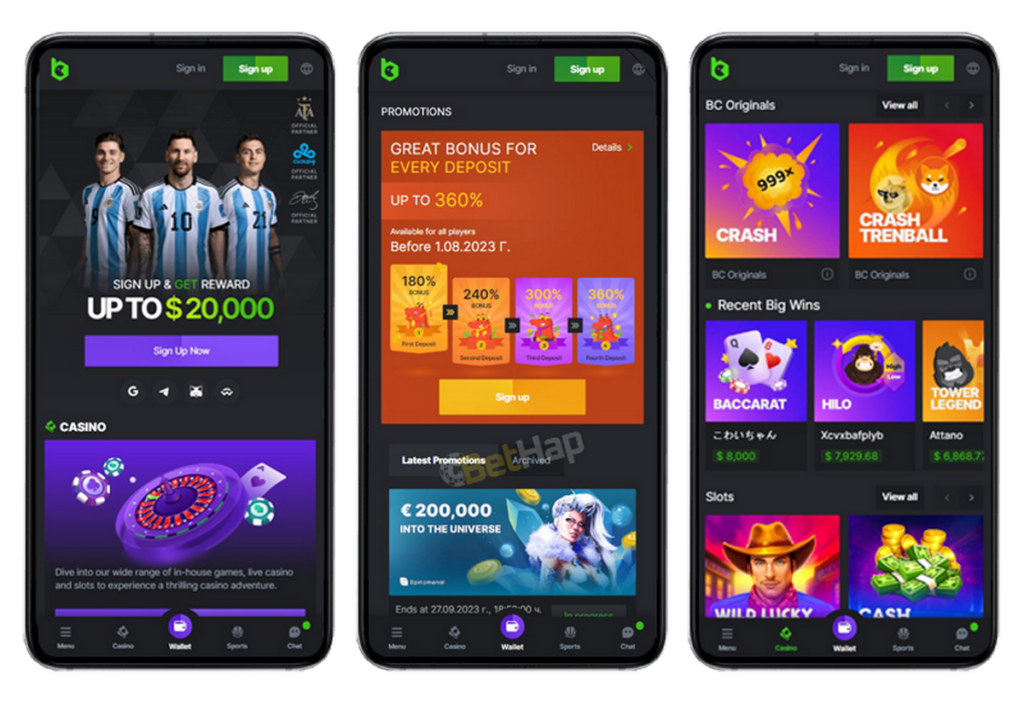 - Buksan ang BC.Game application mula sa listahan ng mga application sa mobile at pagkatapos ay mag-log in. Ipakikilala mo ang iyong username at password. Kung wala ka pang account, may posibilidad na magrehistro mula mismo sa loob ng application.