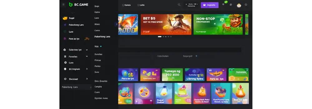 - Pumunta sa tab ng casino . Kapag naka-log in, pumunta sa pangunahing BC.Game dashboard. Mag-click sa tab na iyon. Ito ay matatagpuan sa tuktok na menu sa interface ng platform.